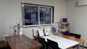 コロナ感染防止の為、カウンター、商談スペースにアクリルスクリーンを設置しました。